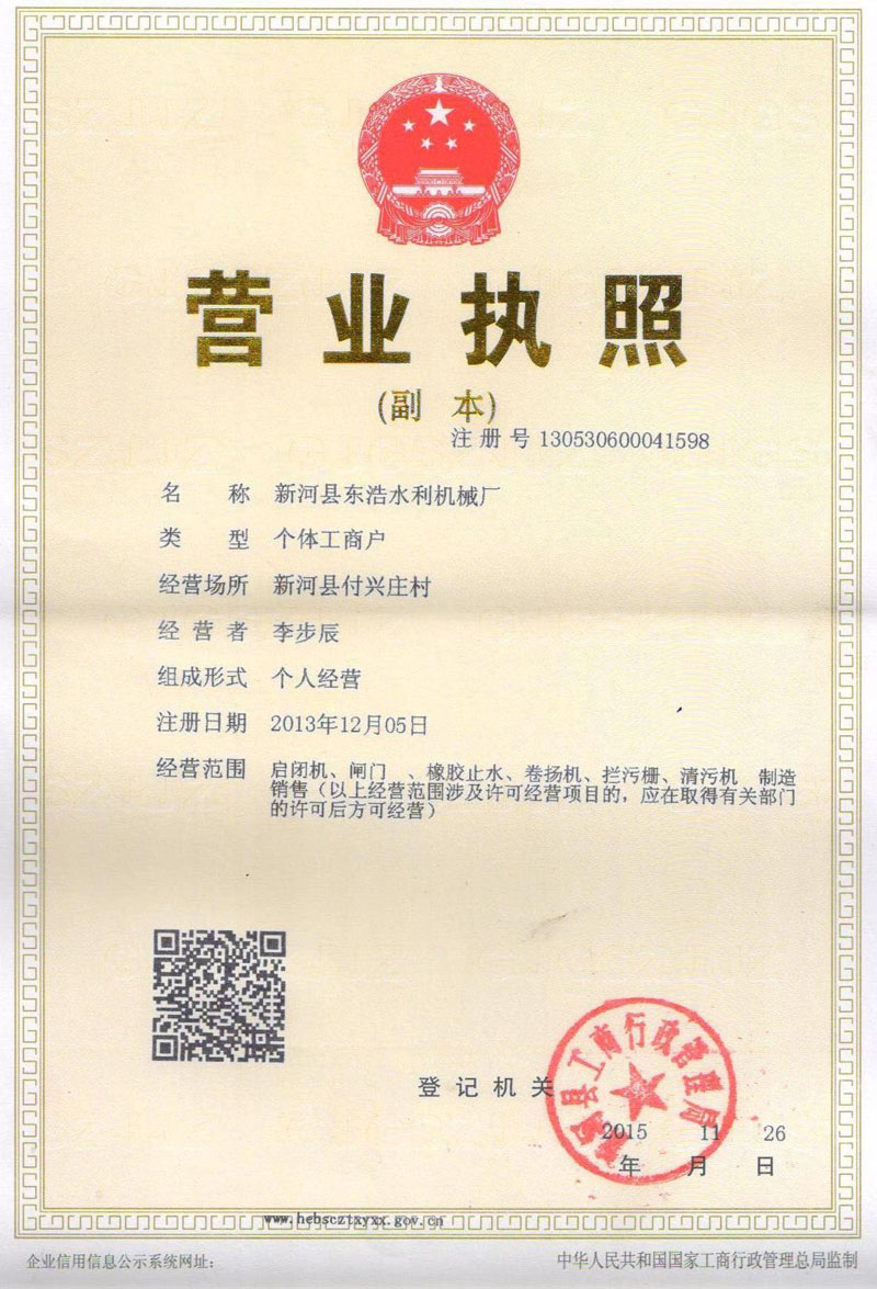 中型螺杆式启闭机许可证